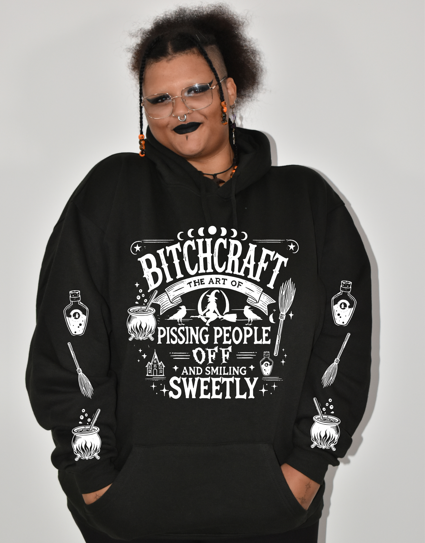 "Bitchcraft" Sleeve Print Standard Unisex Hoodie