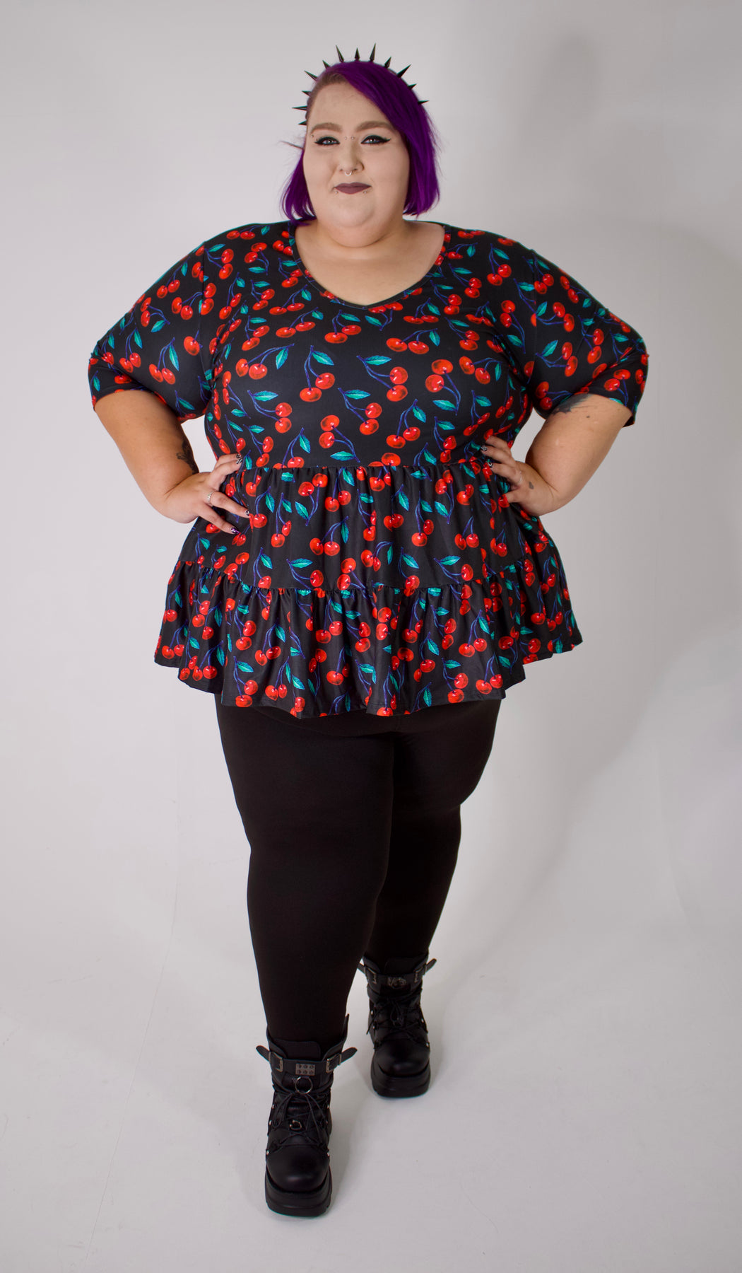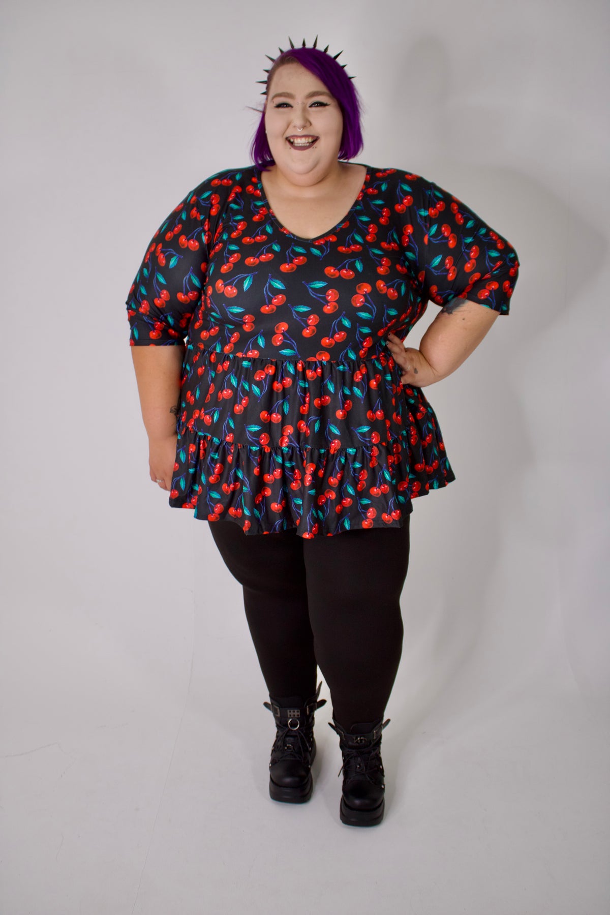 Cherry Baby V Neck Tiered Hem Top