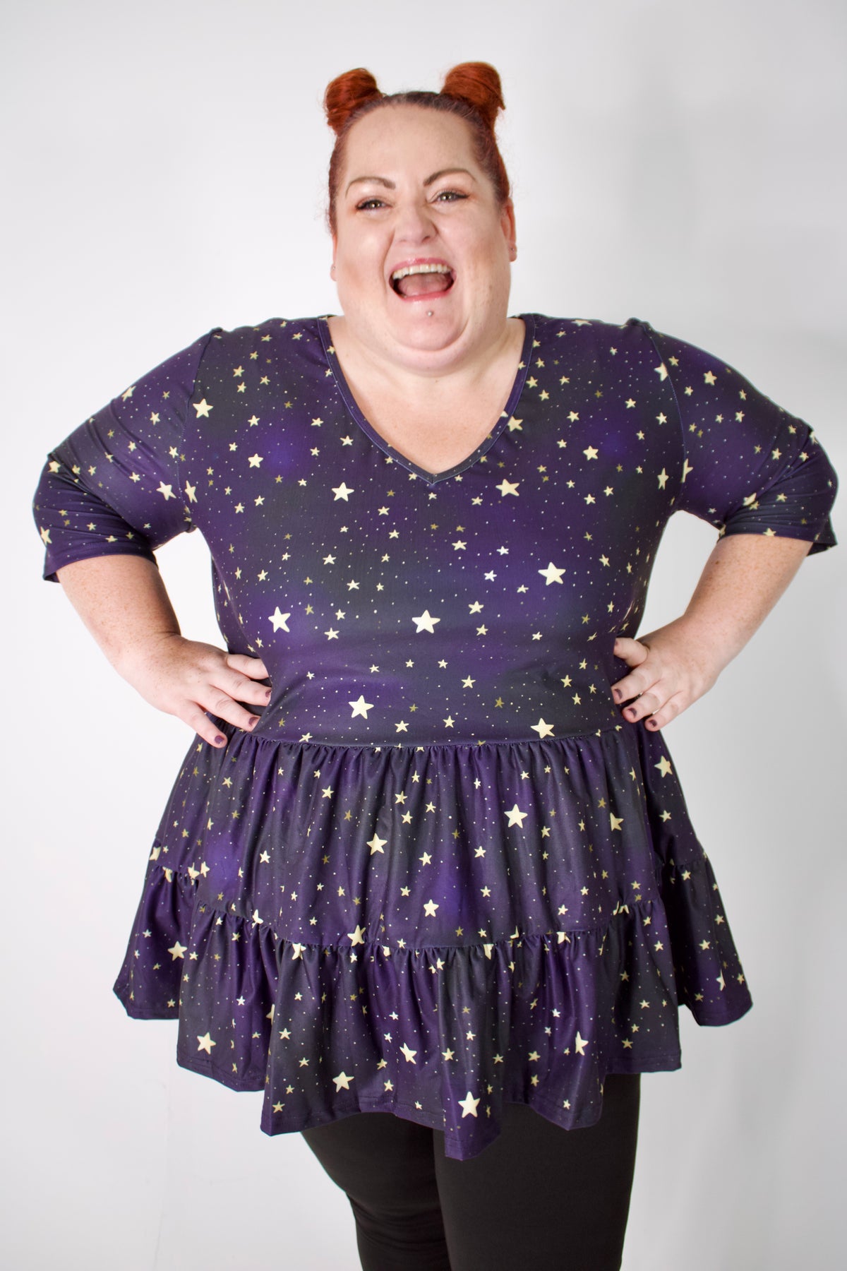 Scattered Skies V Neck Tiered Hem Top