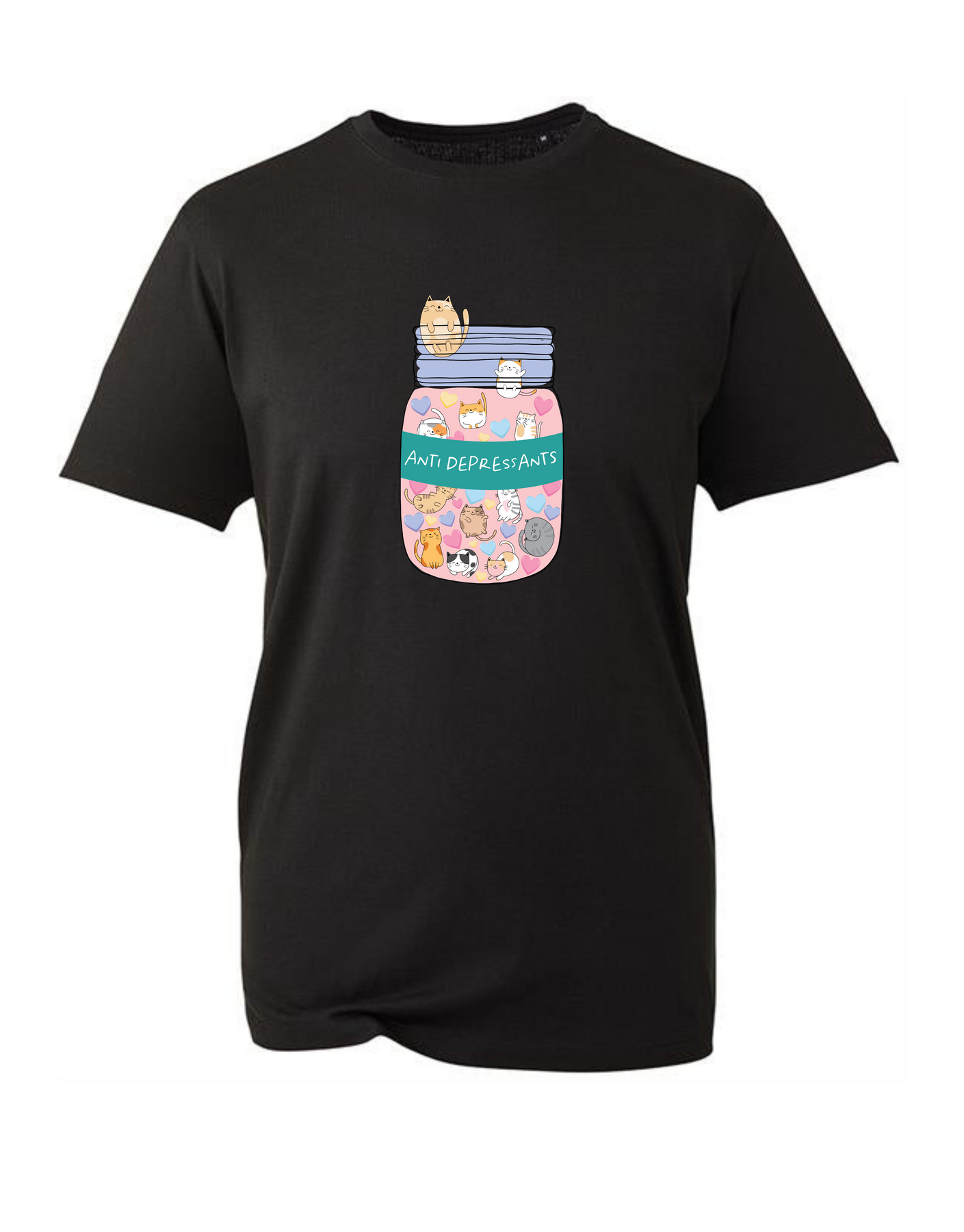 Black Cat "Antidepressants" Unisex Organic T-Shirt