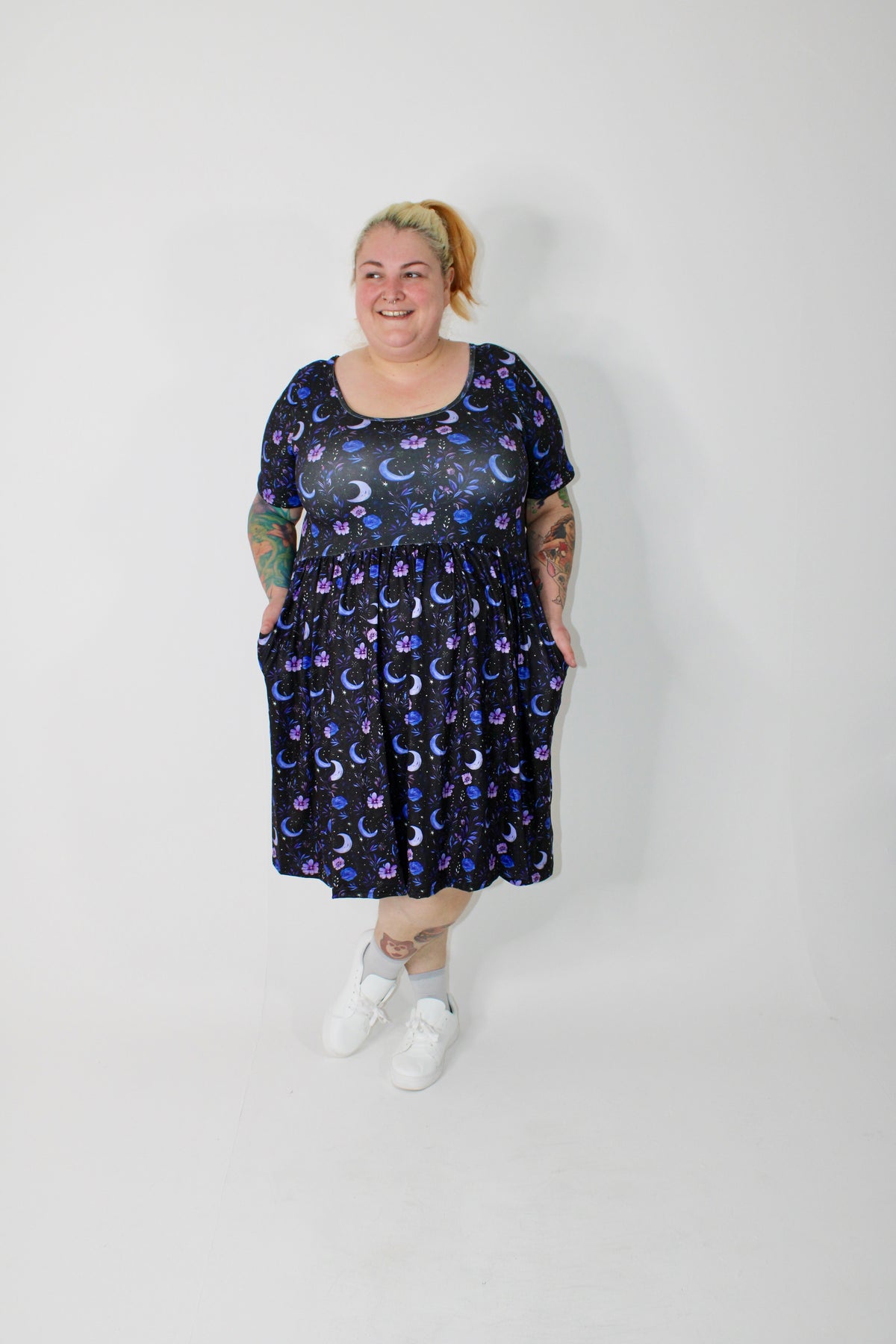 Say hello to our 2-way pocket skater dress! You can choose from our regular round neckline or simply turn the dress around and benefit from a lower scooped neckline! 2 looks in one! Don't worry, we have said goodbye to those annoying neck labels to make this possible!